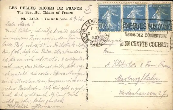 Zustand, siehe Scan, gelaufen, 1926 - ca 14 cm X 9 cm
