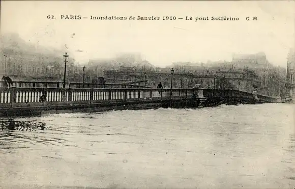 Ak Paris VII, Le Pont de Solferino, Inondations Janvier 1910