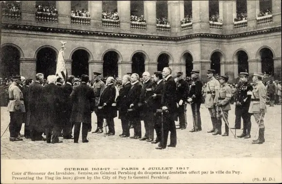 Ak Paris VII, Les Invalides, Cour d'Honneur des Invalides, Remise au General Pershing du drapeau