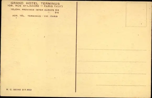Ak Paris VIII, Gare Saint Lazare, Hotel Terminus, Salon de Lecture