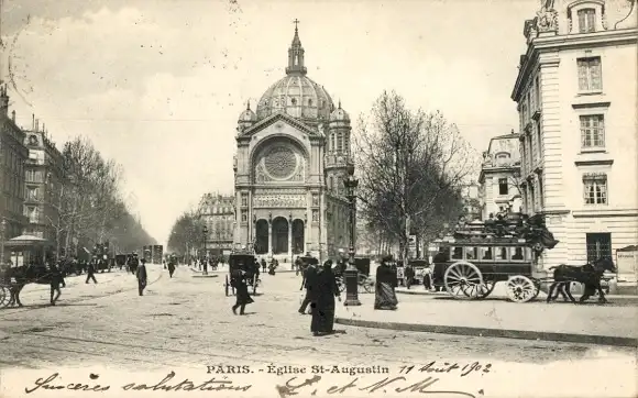 Ak Paris VIIIe Élysée, Saint-Augustin-Kirche, Kutsche