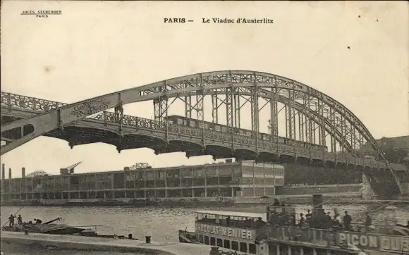 Ak Paris, Viaduc d'Austerlitz, Metro, Ausflugsboot