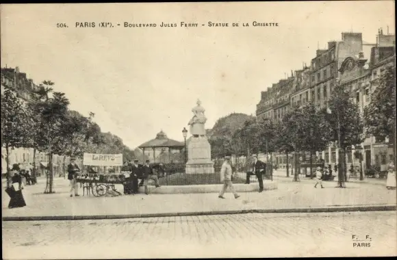 Ak Paris XI, Boulevard Jules Ferry, Statue der Grisette