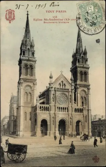 Ak Paris XI, Boulevard Voltaire, Kirche St-Ambroise