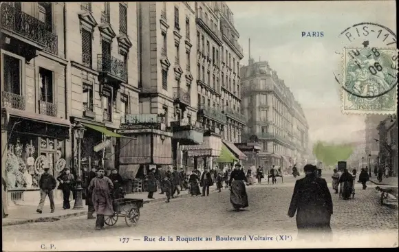 Ak Paris XI, Rue de la Roquette au Boulevard Voltaire