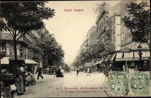 Ak Paris XI, Rue du Faubourg du Temple, Avenue Parmentier