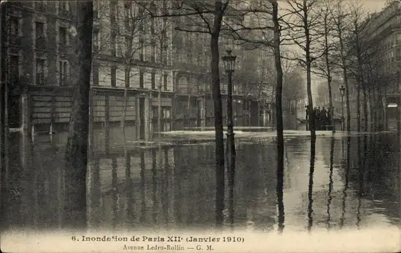 Ak Paris XII Reuilly, Avenue Ledru Rollin, Hochwasser Januar 1910