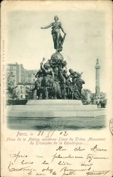 Ak Paris XII Reuilly, Place de la Nation, Denkmal des Triumphs der Republik