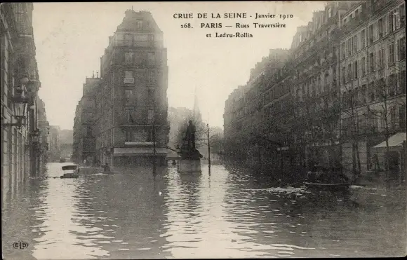 Ak Paris XII, Rue Traversière, Rue Ledru Rollin, Crue de la Seine 1910