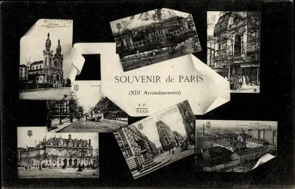 Ak Paris XIII., Detailansichten, Kirche, Straßenpartien