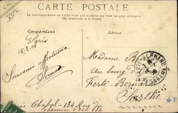 Zustand, siehe Scan, gelaufen, 1908 - ca 14 cm X 9 cm