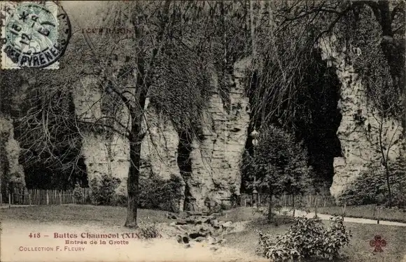 Ak Paris XIX. Buttes Chaumont, Eingang zur Höhle