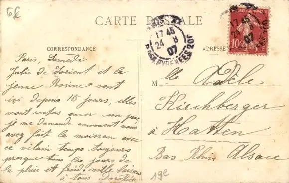 Zustand, siehe Scan, gelaufen, 1907 - ca 14 cm X 9 cm