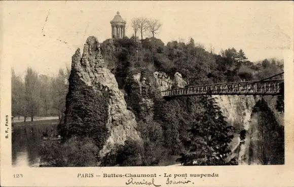 Ak Paris XIX. Buttes Chaumont, Hängebrücke