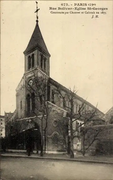 Ak Paris XIX Buttes Chaumont, Kirche St-Georges, Rue Bolivar
