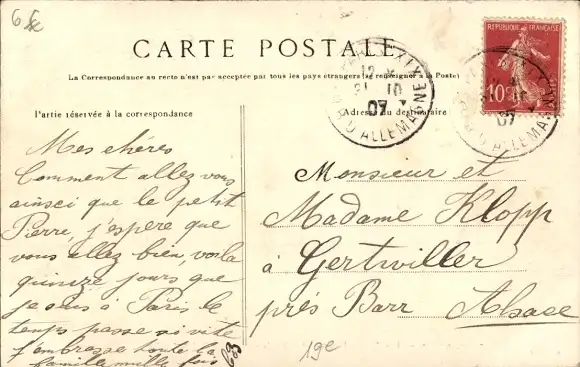 Zustand, siehe Scan, gelaufen, 1907 - ca 14 cm X 9 cm