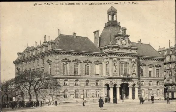 Ak Paris XIX. Buttes Chaumont, Rathaus