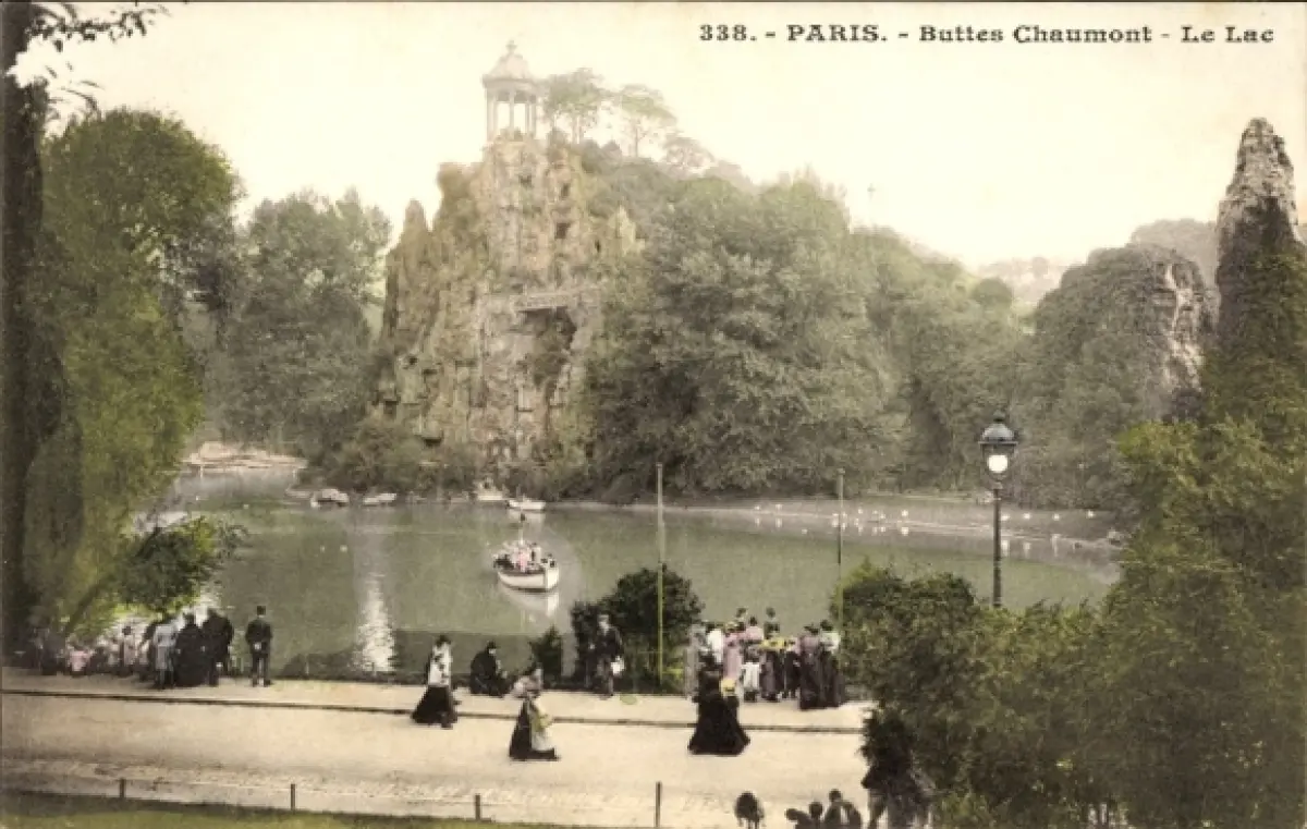 Ak Paris XIX Buttes Chaumont, der See