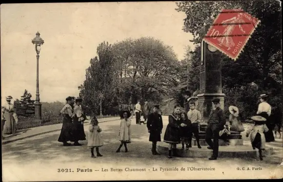Ak Paris XIX., Les Buttes Chaumont, Die Pyramide des Observatoriums