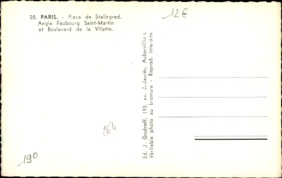 Ak Paris XIX, Place de Stalingrad