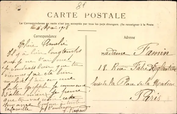 Zustand, siehe Scan, gelaufen, 1908 - ca 14 cm X 9 cm