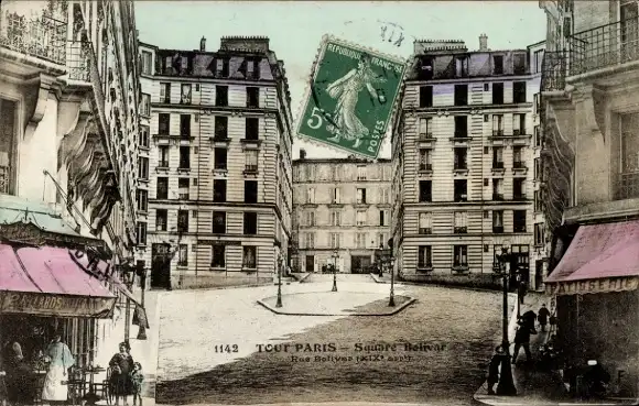 Ak Paris XIX., Square Bolivar, Rue Bolivar, Café, Patisserie