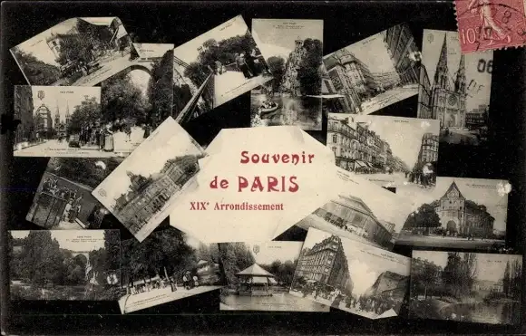 Ak Paris XIX, Teilansichten, Kirche, Straßenpartie