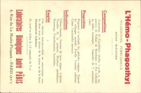 Ak Paris XV., Hemo-Phagosthyl, André Biological Laboratories