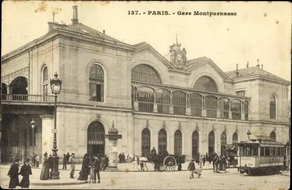 Ak Paris XV Vaugirard, Gare Montparnasse, Straßenbahn