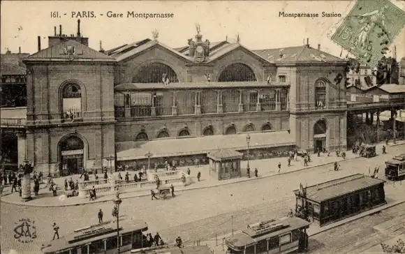 Ak Paris XV Vaugirard, Gare Montparnasse, Straßenbahn