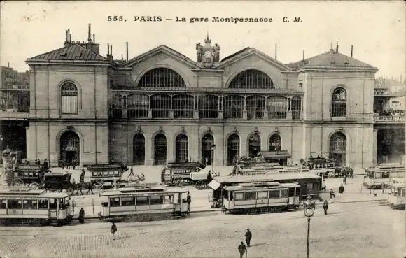 Ak Paris XV Vaugirard, Gare Montparnasse, Straßenbahn