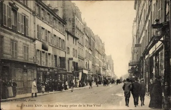 Ak Paris XVI, Rue de Passy, Rue Vital