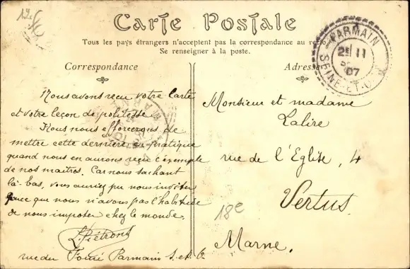 Zustand, siehe Scan, gelaufen, 1907 - ca 14 cm X 9 cm