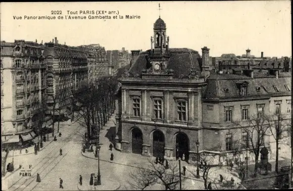 Ak Paris XX, Vue Panoramique de l'Avenue Gambetta et la Mairie
