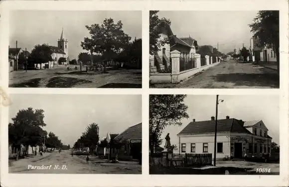 Ak Parndorf Niederösterreich, Kirche, Geschäft Illenschitz