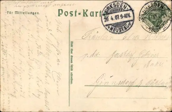 Zustand, siehe Scan, gelaufen, 1907 - ca 5 cm X 3 cm