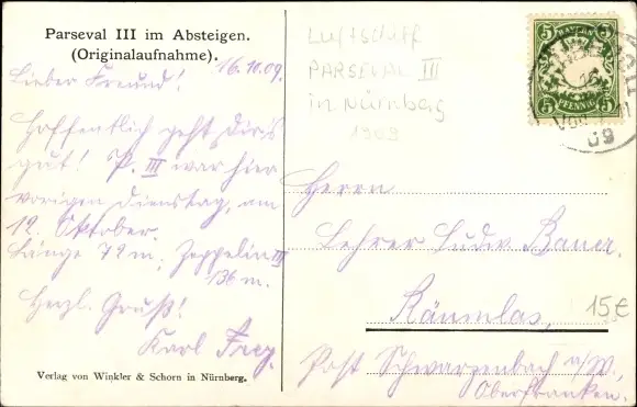 Ansichtskarte, Postkarte, Luftschiff, Zeppelin, Zeppeline, Luftschiffe