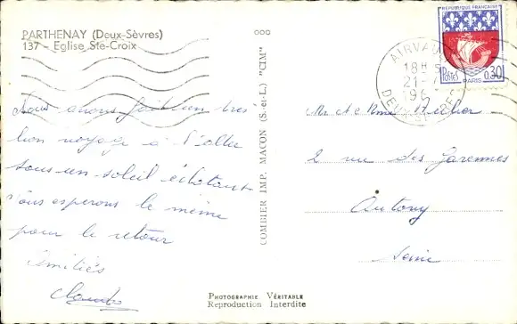 Ak Parthenay Deux Sèvres, Eglise Sainte-Croix