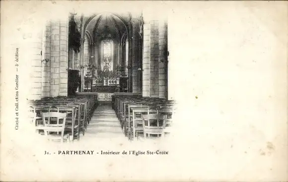Ak Parthenay Deux Sèvres, Kirche Heiliges Kreuz, Innenansicht