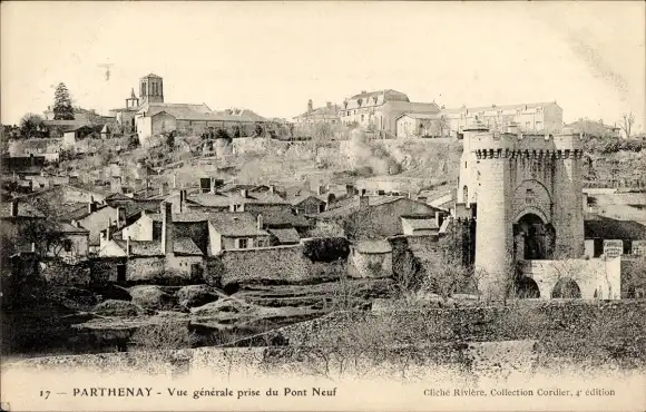 Ak Parthenay Deux Sèvres, Vue generale prise du Pont Neuf