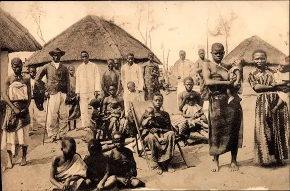 Ak Partie in einem afrikanischen Dorf, Afrikaner, Mission, Wohnhäuser