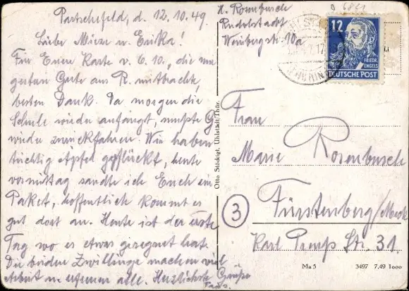 Zustand, siehe Scan, gelaufen, 1949 - ca 15 cm X 11 cm