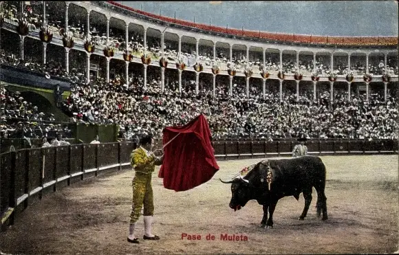 Ak Pase de Muleta, Stierkampf in der Arena, Rotes Tuch, Todesstoß
