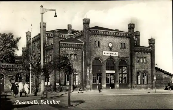 Ak Pasewalk in Mecklenburg Vorpommern, Bahnhof, Straßenseite