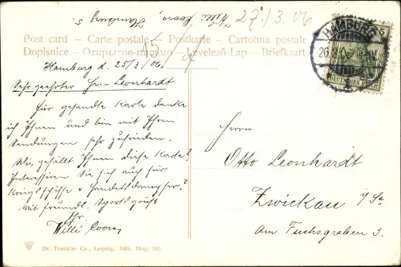 Zustand, siehe Scan, gelaufen, 1906 - ca 14 cm X 9 cm