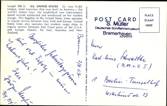 Ak Passagierdampfer SS United States, United States Lines, USL