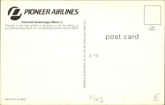 Ak Passagierflugzeug, Pioneer Airlines, Fairchild Swearingen Metro 3