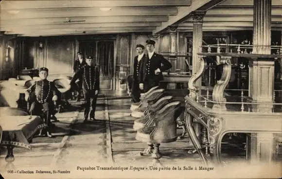 Ak Passagierschiff Espagne, CGT, Speisesaal, Kellner