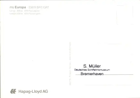 Ak Passagierschiff Europa, HAPAG Lloyd AG