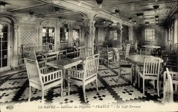 Ak Passagierschiff France, CGT, Café-Terrasse